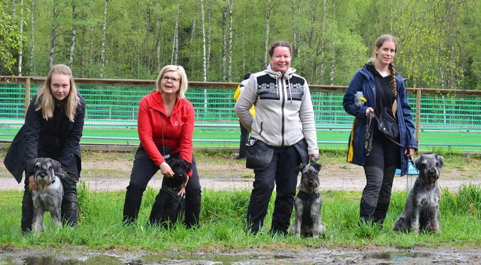 Tästä me jatketaan kohti näyttelykesää. Pennut on ahkeroineet myös muilla harrastuskentillä. Noma kulkee snautseriporukan mukana harrastamassa Oulussa ja lisäksi käy alkeistokoa Kempeleessä. Rambo aloitti juuri uuden toko-kurssin entisten jatkoksi. Harmi aloittaa tällä viikolla agilityyn tutustumisen ja Sansa ensi viikolla agilityn alkeiskurssin.  Lisäksi kaikkien kanssa touhutaan kaikennäköistä arjenhallintaan liittyvää. Hirmuisen aktiivisia omistajia, kyllä kasvattaja on tosi kiitollinen.