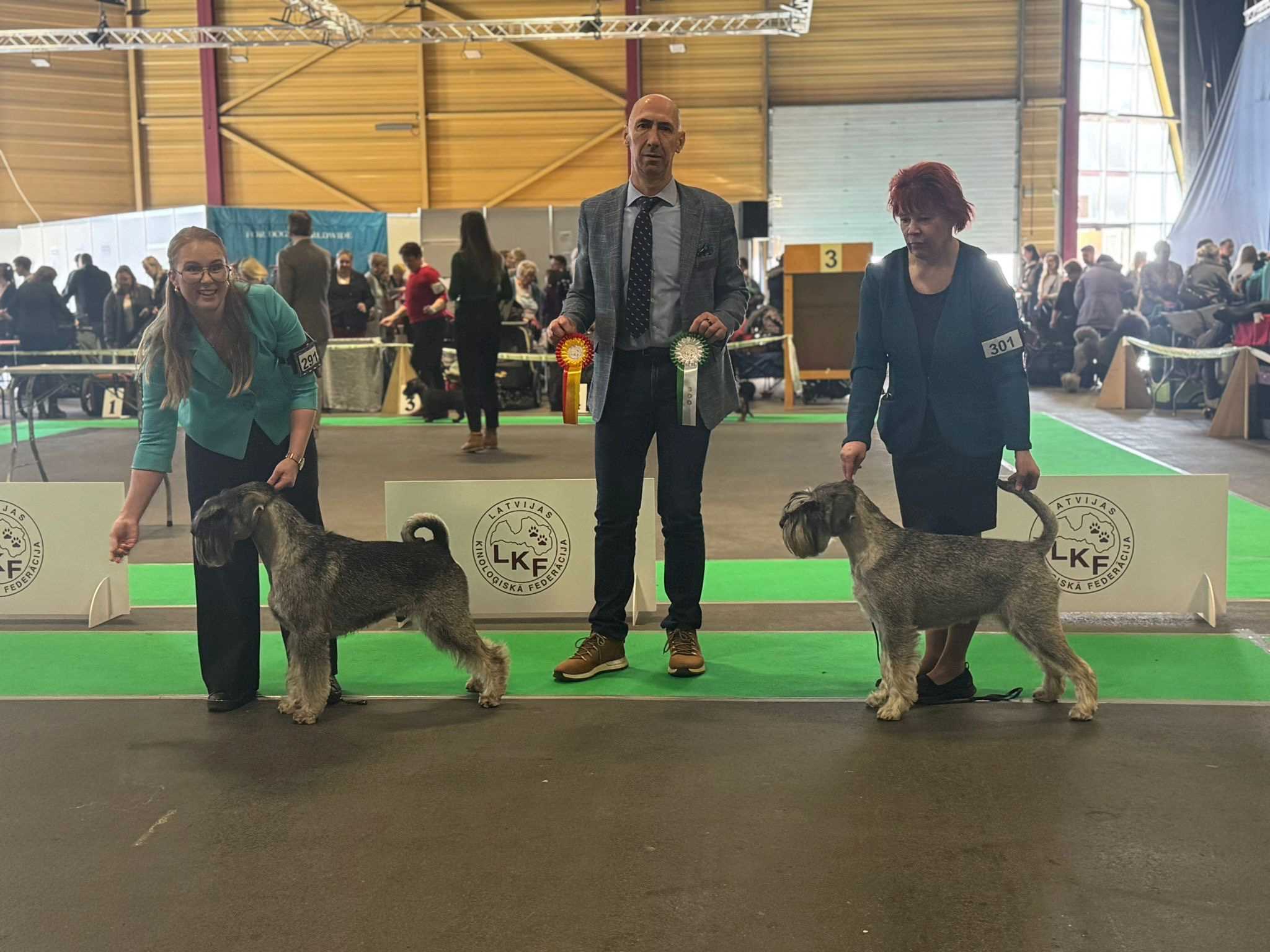 Lauantaina kisattiin KV näyttelyssä Belgialaisen Dirk Spruytin kehässä. Teppo viimeisteli CIB-J* titteliin tarvittavat junnu-cacibit ja valioitui samalla myös Latvian ja Baltian juniorivalioksi. Harmi voitti nartut ja ansaitsi sillä Latvian ja Baltian valiotittelit.
