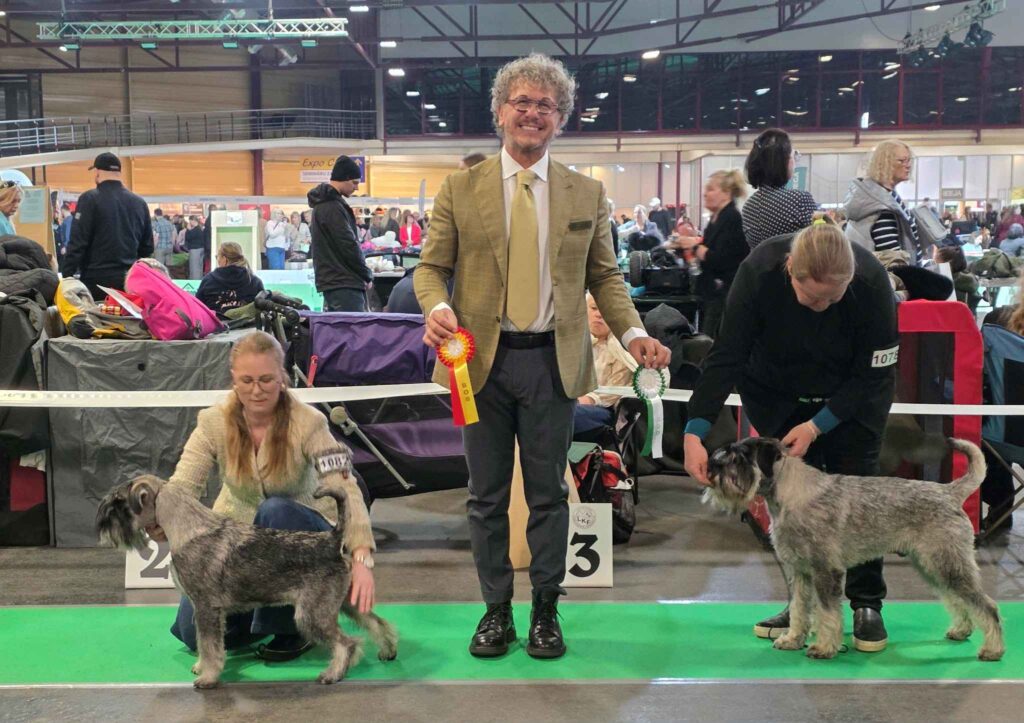 Sunnuntaina oli toinen KV näyttely. Tuomarina snautsereille toimi Arnaldo Cotugno Italiasta. Teppo yllätti meidät iloisesti voittamalla urokset ja Sansa vuorostaan pyydysti itselleen tarvittavan Latvian sertin. Eli ei ihan turhaksi tuloksiltaan jäänyt tämäkään reissu. Harmi vietti turistipäivän kavereita kannustaen.