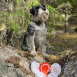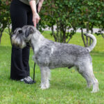 10 months old. Very good size. Masculin. Moving typical for a schnauzer and good reach and drive. Very dark eye with good schnauzer expression. Scissorbite. Straight forelegs. Very good ribcage for his age. Enough angulations in front and rear. Ears could be better on place. Super coat and colour with a clear mask. Super temperament.